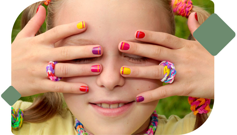 Cuidamos das unhas das crianças com delicadeza e diversão, garantindo um momento seguro, divertido e cheio de cores para os pequenos se sentirem especiais.